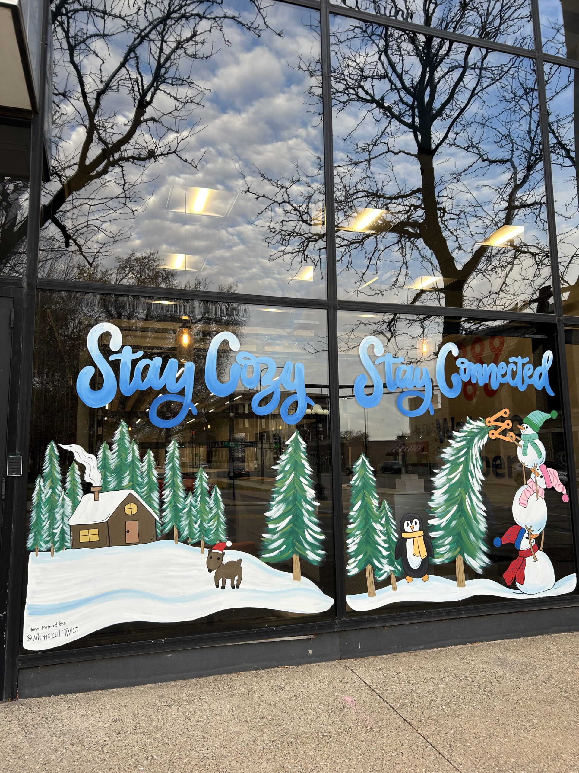 We’re bringing the winter vibes to our office with some festive window art and seasonal decorating! A special thanks to the Whimsical Twist for sprucing up our windows and creating this special winter scene.